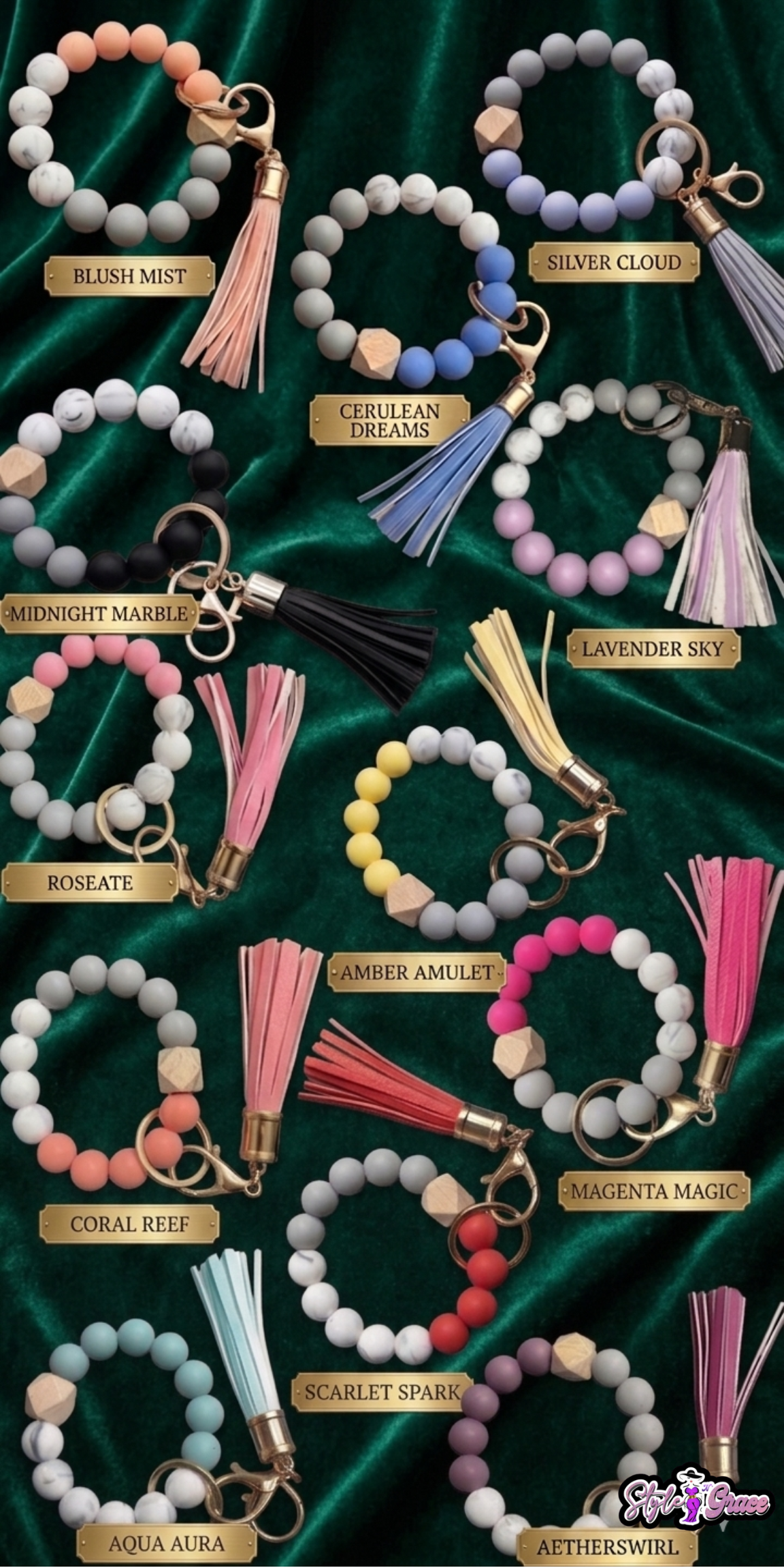 Each piece features smooth, high-quality beads, a natural wood accent bead, and a luxe tassel charm paired with durable gold-tone hardware. Slip it on your wrist for hands-free convenience while running errands, shopping, or managing your busy day in style.