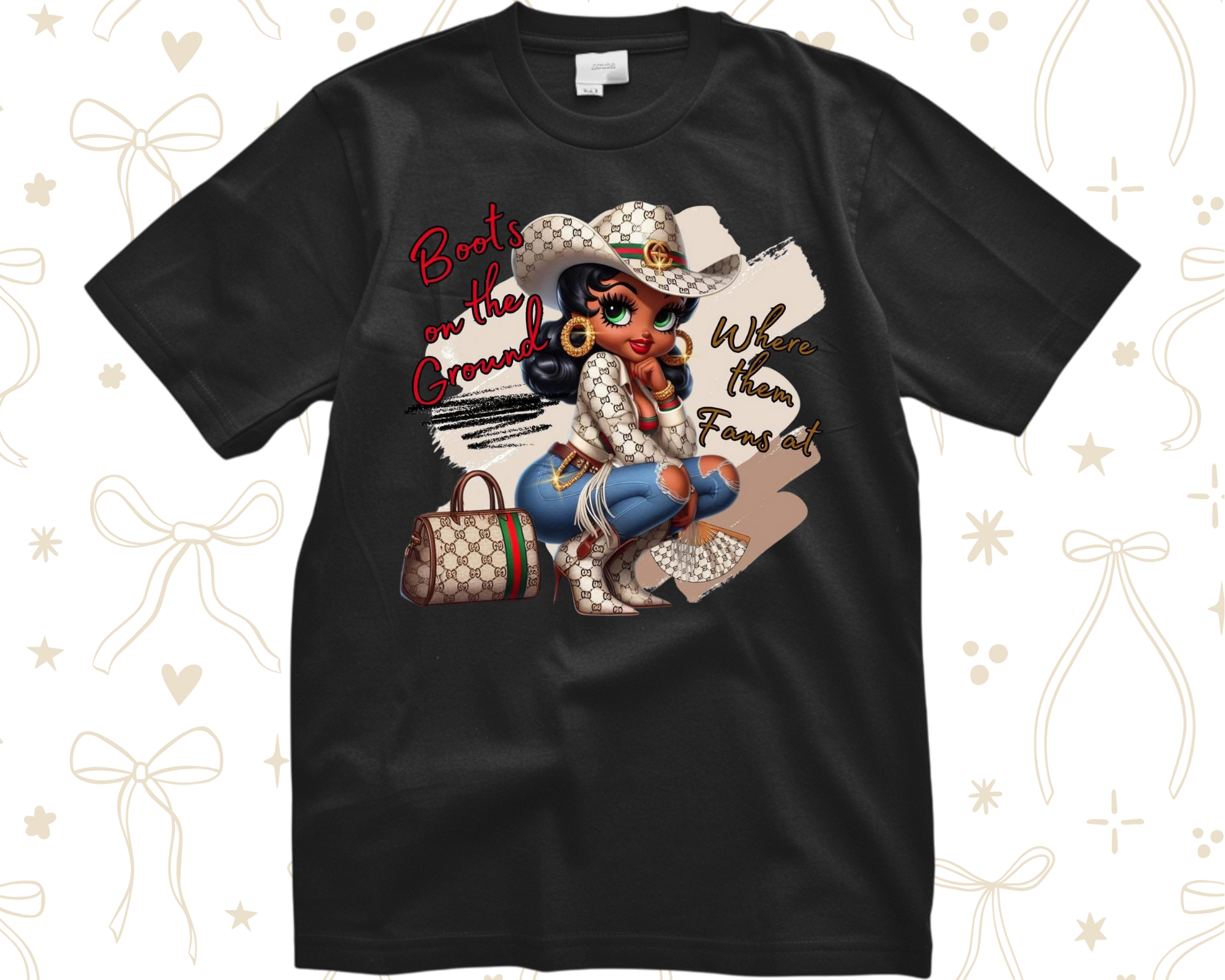 Show your passion and support with the Boots on the Ground fan girl country shirt. Designed for dedicated fans, this shirt combines comfort and style, letting you wear your pride wherever you go. Durable and flattering, this shirt is made to keep you comfortable during every concert, gathering, or casual day out. Make a statement and show your fan spirit with confidence. cotton/poly blend t-shirt. lightweight and breathable material